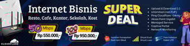 Layanan Internet yang dikhususkan untuk Kantor, Resto, Hotel, Sekolah yang disediakan oleh Partner ISP dengan bundling layanan Managed Service memberikan jaminan koneksi dan ping ke Cloudflare <13 ms serta SLA 99.5%